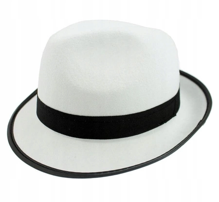 KAPELUSZ GANGSTERA, BIAŁY Z CZARNĄ LAMÓWKĄ