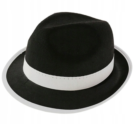 Kapelusz gangstera - czarny z białą lamówką, styl retro