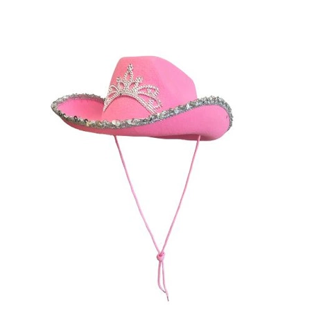 Kapelusz kowbojski z tiarą różowy dla dorosłych