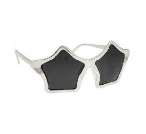 Okulary w kształcie srebrnych gwiazd z czarnymi szkłami.