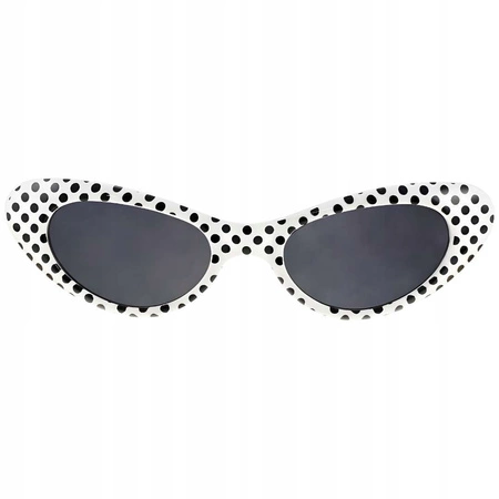 Okulary w stylu retro w czarne kropki to doskonały dodatek na każdą imprezę, karnawał lub zabawną sesję w fotobudce! Ich unikalny design w stylu "kocie oko" oraz kontrastowy wzór czarnych kropek na białym tle sprawiają, że przyciągają wzrok i dodają charakteru każdej stylizacji. Idealne na przebierane przyjęcia, tematyczne eventy oraz jako zabawny rekwizyt do zdjęć, który na pewno wywoła uśmiech na twarzy gości.