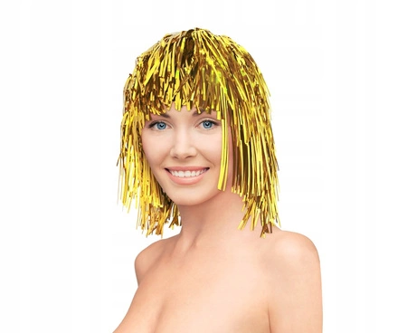 Złota peruka foliowa to doskonały wybór, jeśli chcesz w mgnieniu oka odmienić swój wygląd i dodać stylizacji odrobinę luksusu i blasku. Wykonana z metalizowanej folii, peruka pięknie mieni się i przyciąga uwagę, co czyni ją idealnym dodatkiem na wszelkiego rodzaju imprezy. Jej elegancki, złoty kolor nadaje fryzurze wyjątkowego szyku, który świetnie wpisuje się w klimat zabawy i eleganckich wydarzeń.