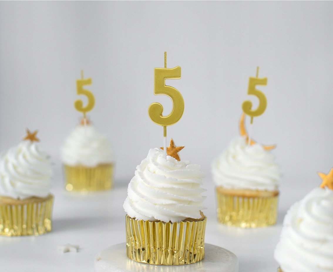 Świeczka piker B&C cyferka 5, metaliczna złota, 9.5x2.3 cm