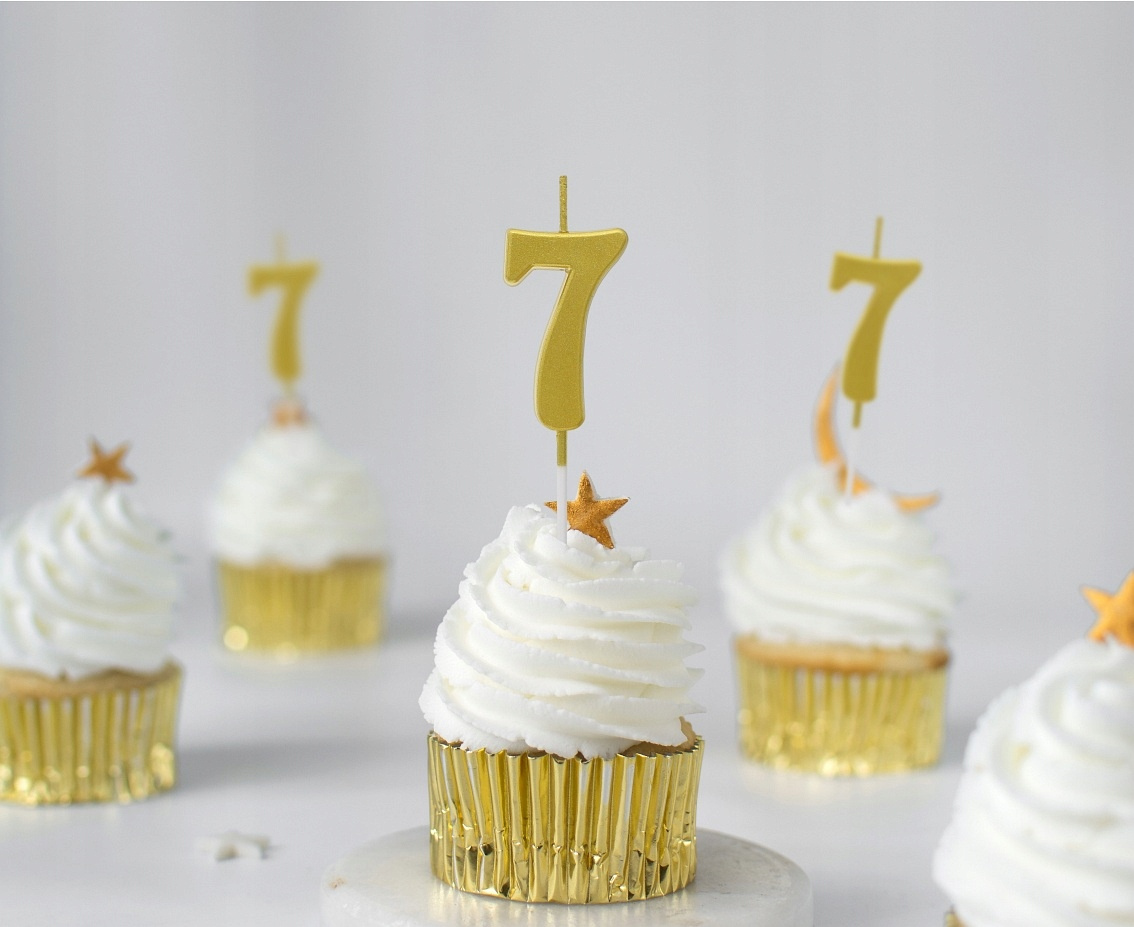 Świeczka piker B&C cyferka 7, metaliczna złota, 9.5x2.3 cm